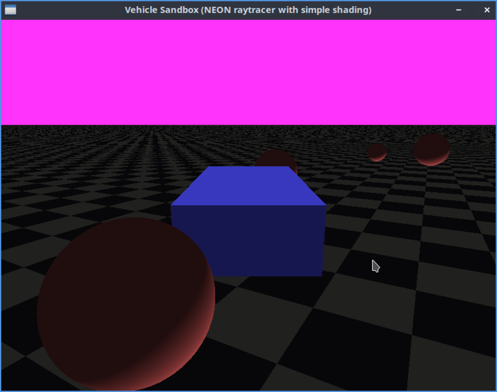 create me a video game that is a simple vehicle sandbox in the C++ programming language. The player should be able to control the vehicle in the physics sandbox. The vehicle should drive around a simple world with basic terrain. The player view should be 3rd person. For input, output, & video use SDL2. The player should be able to control the vehicle using the W A S D keys to drive. audio is not required in the output program. Use the ENTT entity component system for the mechanics of the video game. Use the Bullet Physics engine for all physics simulation including collision detection. Be sure and properly integrate ENTT with Bullet Physics. This video game should be complete, functional and ready to play after being compiled. To avoid generating large amounts of output, prefer to use well tested libraries for functionality when possible. There should not be any skeletons, pseudo code, or incomplete code. Be sure and create a video game that is ready to play. When it is necessary to use assets for sound, geometry, textures and other resources avoid generating large amounts of output. Instead provide hyperlinks to locations where these assets can be downloaded by me. Make sure the hyperlinks actually work. In order to avoid generating large amounts of output do not generate a build system. I will determine the best method to compile this software on my own. output a single c++ file. do not use any obsolete or deprecated APIs. make sure to use libraries where possible to implement things instead of generating large amounts of code the graphics should be 3D. Use a ray tracing implementation in software to render all graphics. Do not use advanced techniques like lighting, global illumination, anti alasing. The program should use NEON instructions for the ARM architecture to accelerate the software raytracing. Be sure and use GCC intrinsics to access the NEON instructions. The architecture is aarch64 so use all NEON instructions for vectorization where possible. be sure and use vectorized intersections. use a vectorized (batch-of-4) NEON-accelerated intersection kernel instead of scalar per-pixel intersection loops. do not use advanced techniques like BVH The vehicle should be a rectangular box that is rendered from triangular geometry. do not use a pure axis aligned bounding box for rendering the vehicle as it does not produce the correct result The gameplay area should include spheres that interact with the vehicle as part of collisions. The gameplay area should be rendered with a basic checkerboard pattern. --- After that Copilot decided to generate a bunch of files so I replied with: generate a complete single file program again for me with that correction --- After that I added this request: add basic shading to spheres and the vehicle geometry to give the appearnce of a single light source. generate a single file for me again